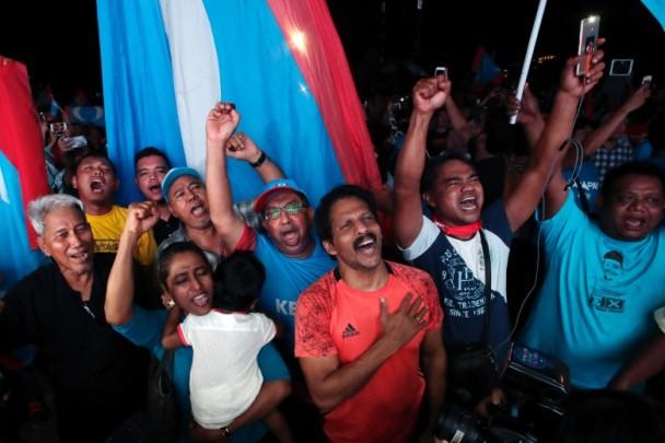 馬哈迪在周三晚上11時(shí)10分宣布,根據(jù)非官方統(tǒng)計(jì)顯示,希望聯(lián)盟已奪下6州政權(quán),包括檳城、雪蘭莪、吉打、森美蘭、柔佛及馬六甲。他表示,很有信心希望聯(lián)盟能以簡單多數(shù)國會(huì)議席取得執(zhí)政權(quán)。他批評選舉委員會(huì)并沒有好好地執(zhí)行工作,拒絕簽署選票表格14,以致無法公布官方投票成績。全國近1500萬登記選民,投票選出國會(huì)下議院222席及州議會(huì)505席,任何陣營取得下議院至少112席,即可籌組政府。納吉布順利保留議席,但國民陣線多名重量級候選人爆冷落敗。