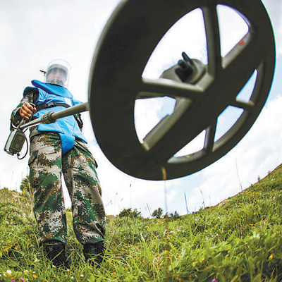 中國維和部隊軍人在黎巴嫩南部進行清排探測作業(yè)。 |