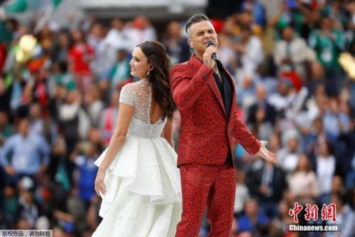 當(dāng)晚,率先登場的英國著名歌手羅比-威廉姆斯,他身著一身紅色西服唱響了這場音樂盛宴的第一個音符,威廉姆斯充滿激情能量的勁歌讓盧日尼基體育場瞬間變身為音樂的海洋。