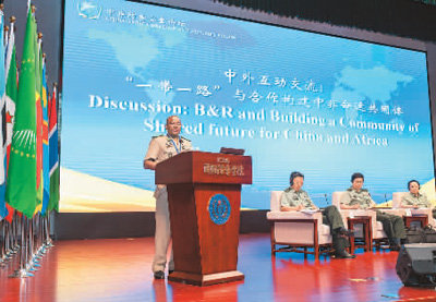 中非防務(wù)安全論壇代表與學(xué)員圍繞“‘一帶一路’與合作共建中非命運(yùn)共同體”進(jìn)行互動(dòng)交流。 |