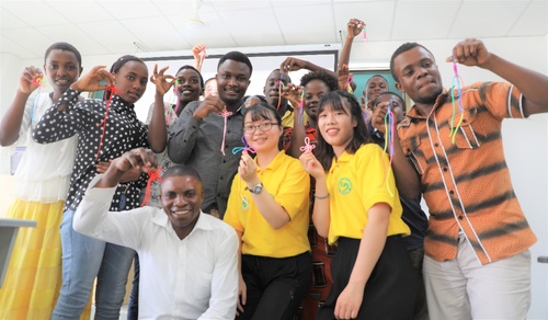 坦桑尼亞達(dá)累斯薩拉姆大學(xué)孔子學(xué)院的中國傳統(tǒng)文化課堂內(nèi),當(dāng)?shù)貙W(xué)生在跟著中國老師學(xué)習(xí)制作中國結(jié)。人民日報(bào)記者 呂 強(qiáng)攝