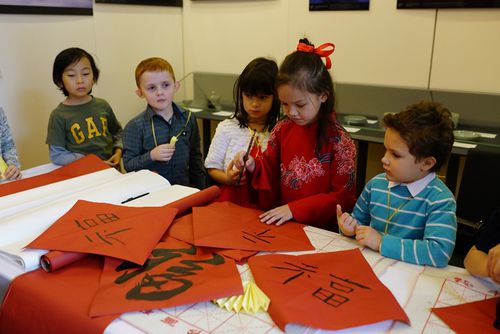 在俄羅斯,中俄小朋友一起學(xué)寫“福”字,慶祝春節(jié)。人民日報(bào)記者 殷新宇攝