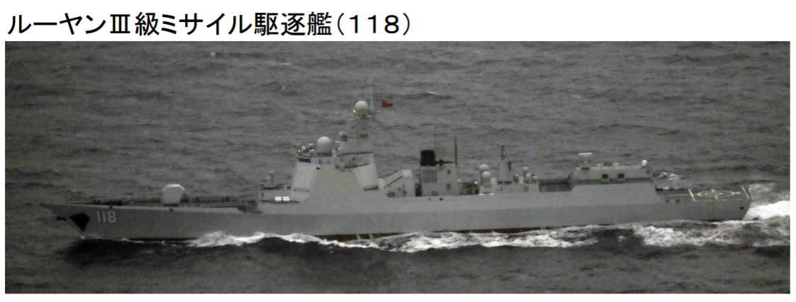 日本自衛(wèi)隊(duì)拍攝的中國052D艦穿越對(duì)馬海峽向北航行進(jìn)入日本海
