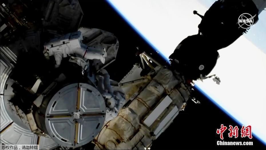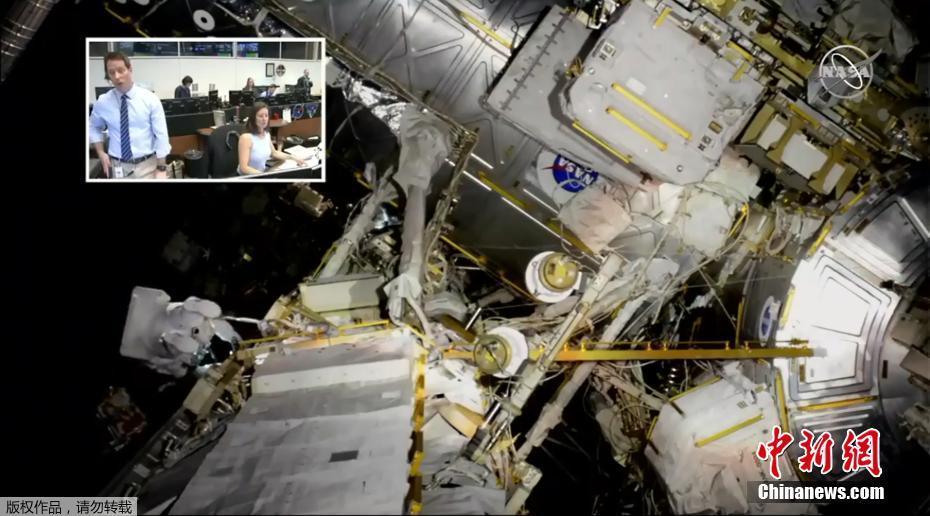 宇航員進行太空行走為國際空間站更換電池