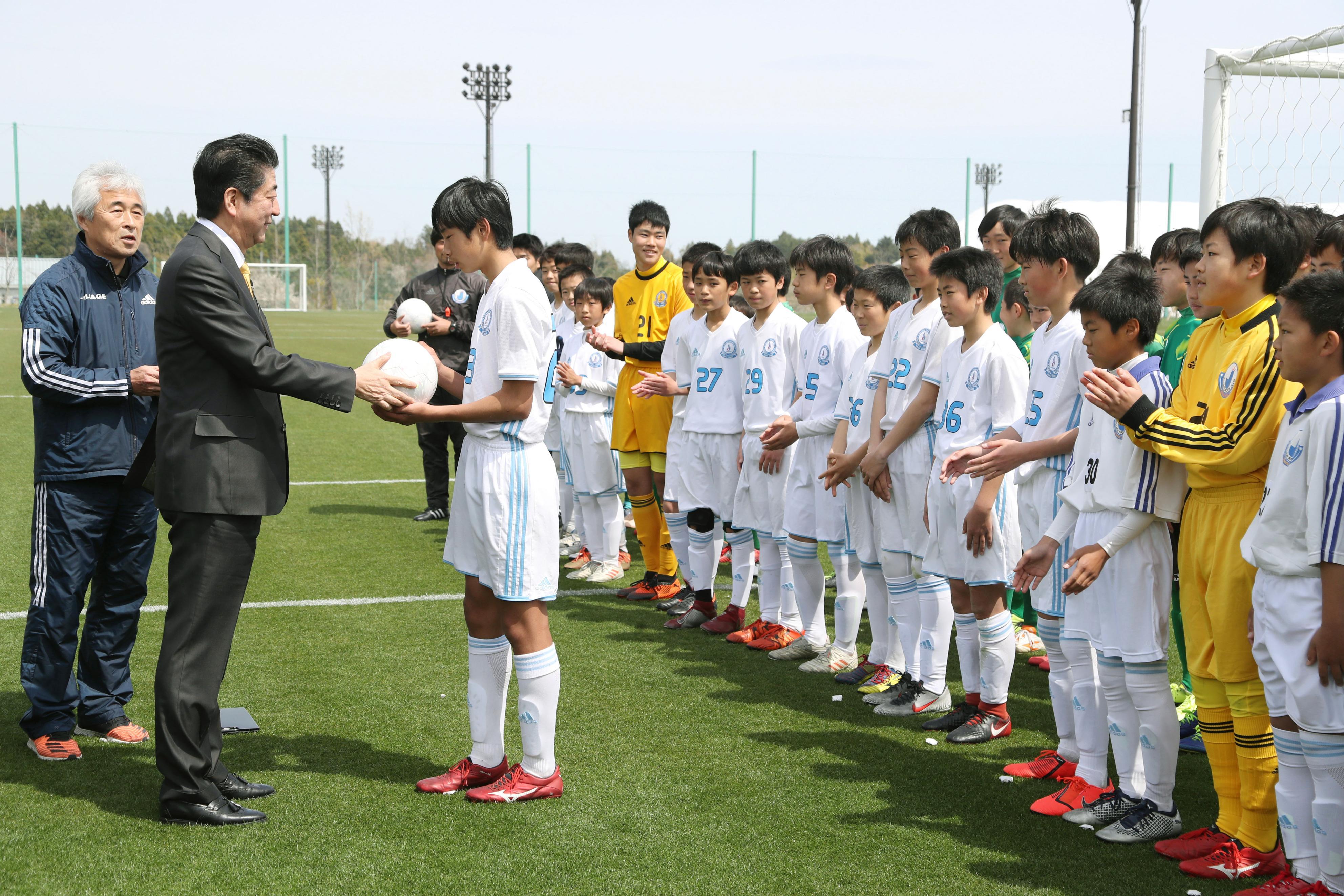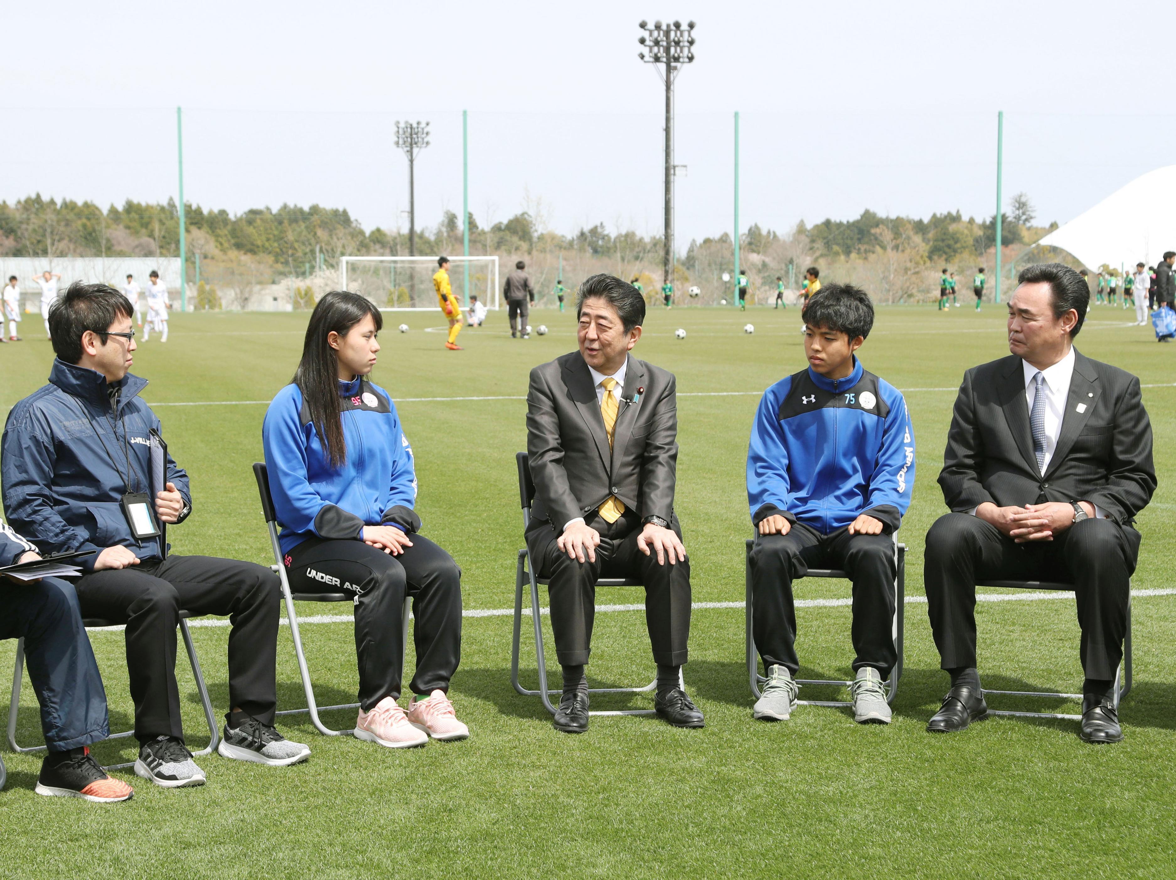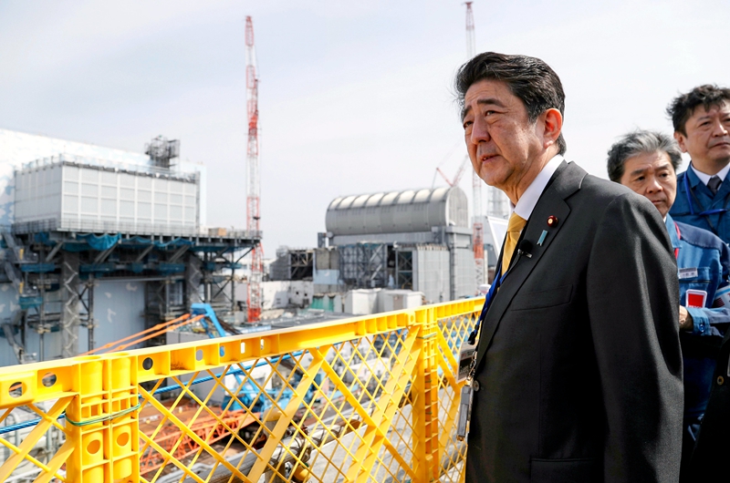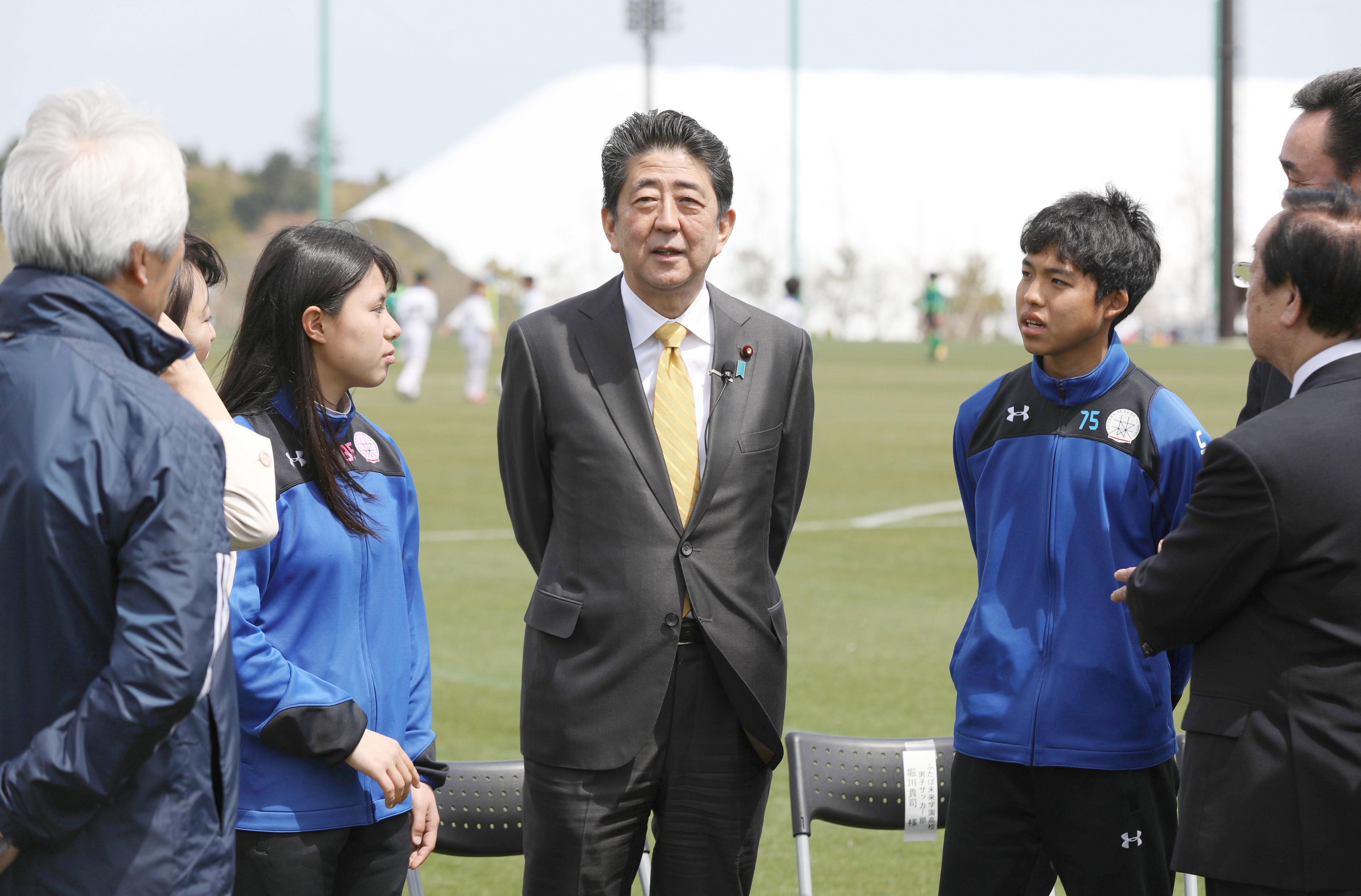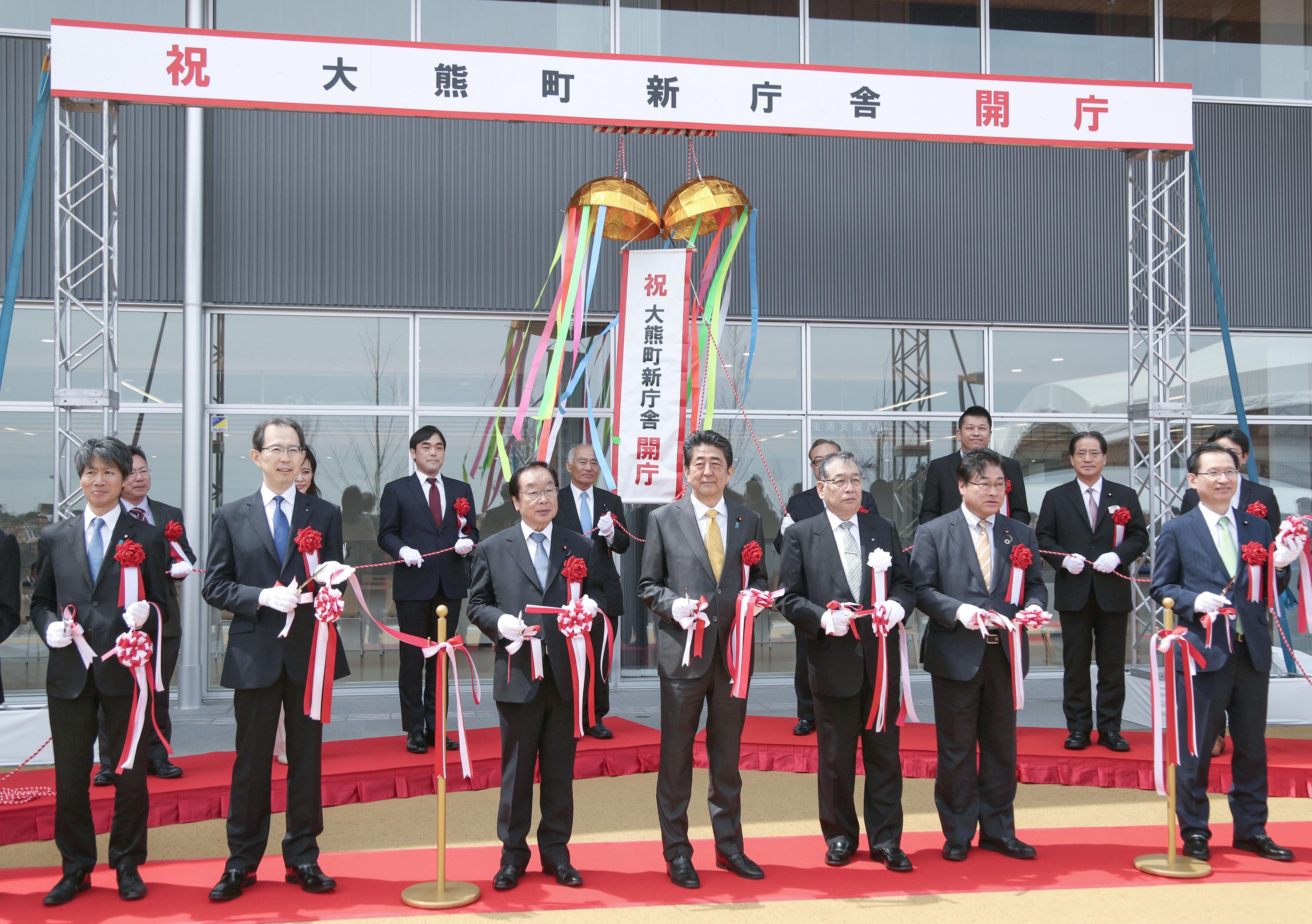 當(dāng)?shù)貢r(shí)間2019年4月14日,日本福島縣大熊町,日本首相安倍晉三造訪當(dāng)?shù)?,視察福島核災(zāi)區(qū)重建情況,赴福島第一核電站視察,并走訪學(xué)校,與學(xué)生交流,出席大熊町新廳舍開廳儀式。