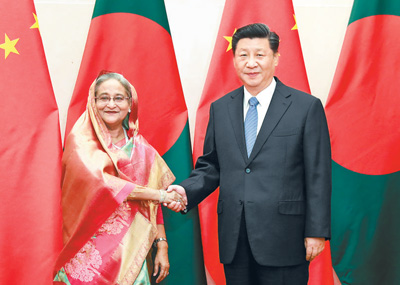 習(xí)近平指出,中國和孟加拉國是傳統(tǒng)友好鄰邦。我2016年對貴國進行國事訪問時,將兩國關(guān)系提升為戰(zhàn)略合作伙伴關(guān)系,推動雙邊交流合作步入快速發(fā)展的新階段,為各自國家經(jīng)濟社會發(fā)展注入了新的動力,也為兩國人民帶來了更多福祉。當(dāng)前,中孟都處在各自發(fā)展的關(guān)鍵階段。鞏固好、發(fā)展好戰(zhàn)略合作伙伴關(guān)系,不僅符合兩國和兩國人民共同利益,也有利于亞洲繁榮穩(wěn)定和世界開放合作。