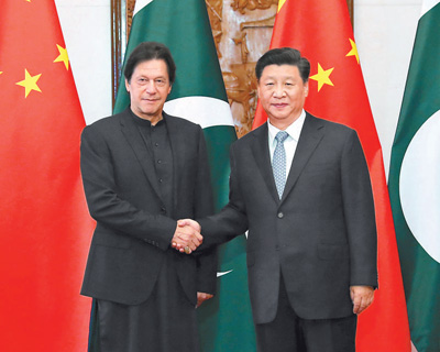 習近平指出,今年是新中國成立70周年。我們舉行了一系列盛大慶典,這也是一次愛國主義的集中教育。近14億中國人民人心空前凝聚,愛國熱情空前高漲,更堅定了我們排除一切艱難險阻走中國特色社會主義道路、把自己的事情辦好、立足世界民族之林的信心和決心。巴基斯坦朋友曾在中國困難的時候提供了無私幫助,現(xiàn)在中國發(fā)展起來了,真誠希望幫助巴方更好發(fā)展。雙方要保持密切高層往來和更緊密的戰(zhàn)略溝通,及時就重大問題協(xié)調(diào)立場。要高標準推進中巴經(jīng)濟走廊建設,建設好、運營好現(xiàn)有能源、交通基礎設施、產(chǎn)業(yè)園區(qū)和民生項目,把走廊打造成高質(zhì)量共建“一帶一路”的示范工程。中方高度贊賞并堅定支持巴方打擊恐怖主義的努力。中巴雙方要加強在聯(lián)合國、上海合作組織等多邊機制的溝通合作,共同維護地區(qū)和平穩(wěn)定。