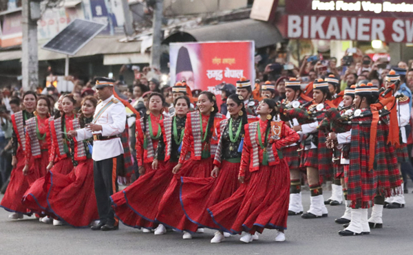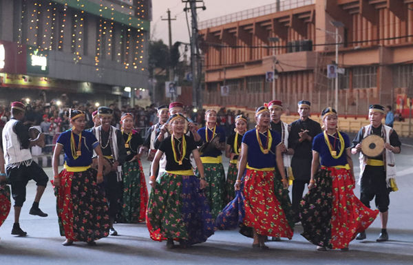 10月12日,尼泊爾民眾載歌載舞熱烈歡迎中國國家主席習(xí)近平來訪。新華社記者丁林?jǐn)z