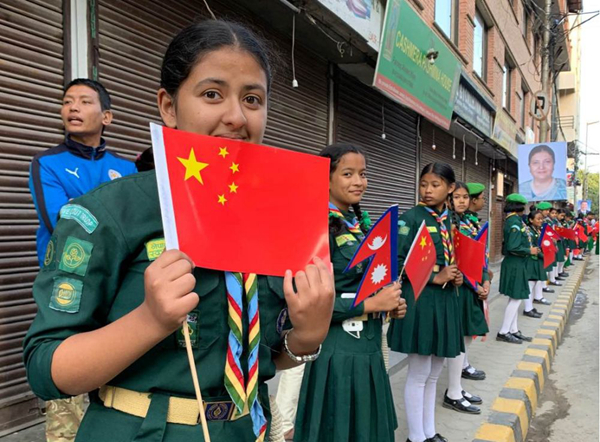 尼泊爾中學(xué)生期待迎接習(xí)近平主席。新華社記者武思宇攝
