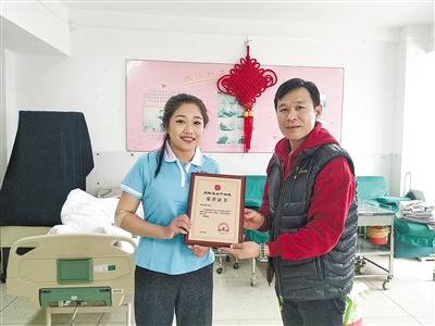 省紅十字會(huì)工作人員為任玨琦頒發(fā)榮譽(yù)證書。