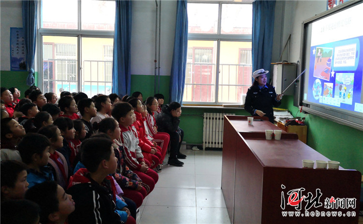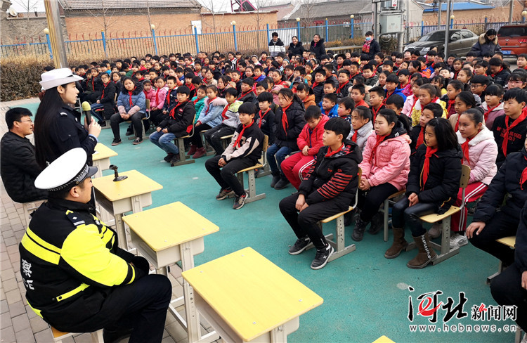 近日,香河縣公安交通警察大隊開展“為全縣農村小學生上交通安全課”活動。圖為香河交警為農村學生講解交通安全知識。