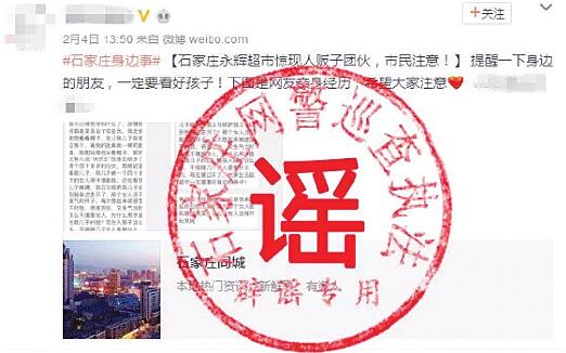 2月份,春節(jié)來(lái)了又走,闔家團(tuán)圓的節(jié)日氣氛里,朋友圈、微博中流傳的一些“丟孩子”“撿孩子”的謠言卻給市民帶來(lái)了一些“驚嚇”。石家莊網(wǎng)警提醒,家長(zhǎng)外出時(shí)看管好自己的孩子,提高警惕是應(yīng)該的,但對(duì)于網(wǎng)上流傳的一些消息要注意辨別,不要草木皆兵。