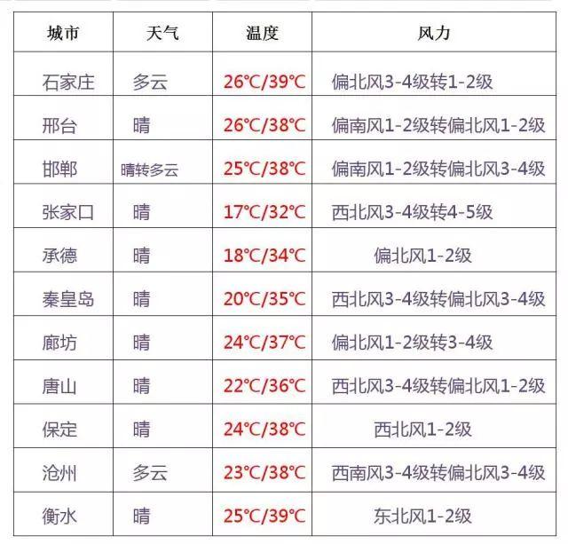 石家莊、衡水將達到39℃!