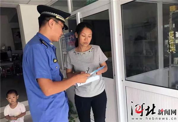 圖為廊坊市城管行政執(zhí)法局工作人員向臨街商戶詳細(xì)宣傳新“門前三包”內(nèi)容。