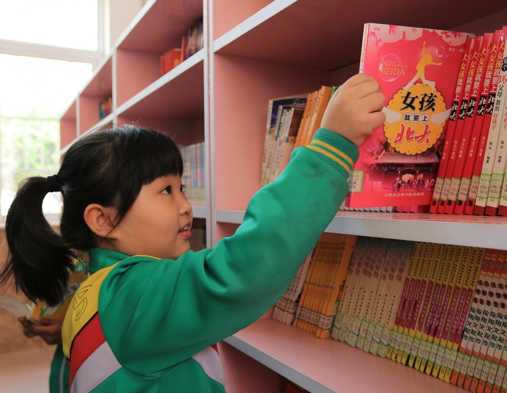 圖為固安縣第四小學的學生在縣內(nèi)圖書館挑選書籍。