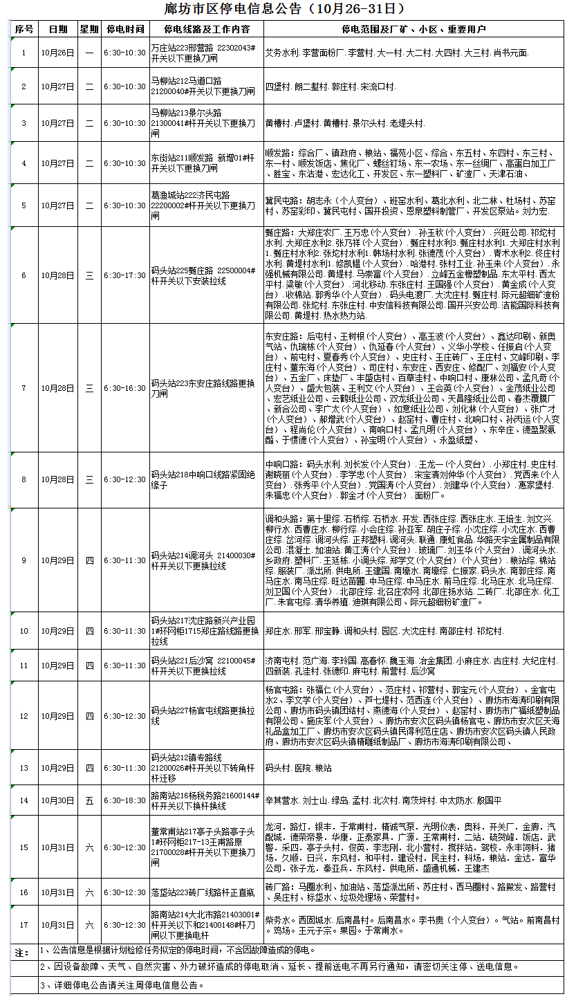 上一篇: 增加廊坊市區(qū)停電信息公告(10月24-29日) 下一篇:關(guān)于開展生活垃圾上門收集工作的通告