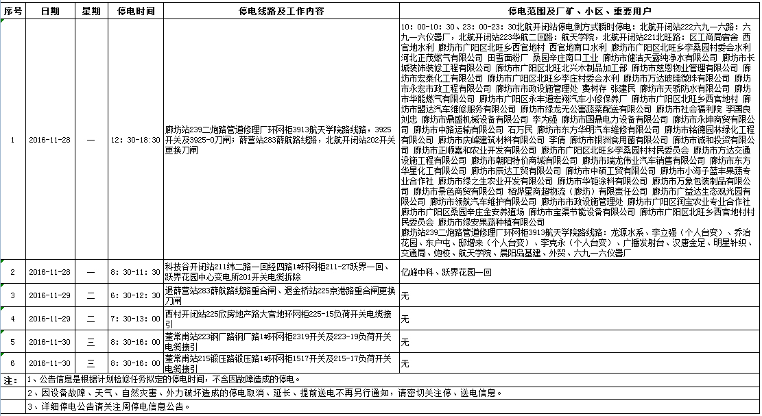 上一篇:廊坊市區(qū)停電信息公告(12月1日-6日) 下一篇:廊坊市區(qū)停電信息公告(11月19日-26日)