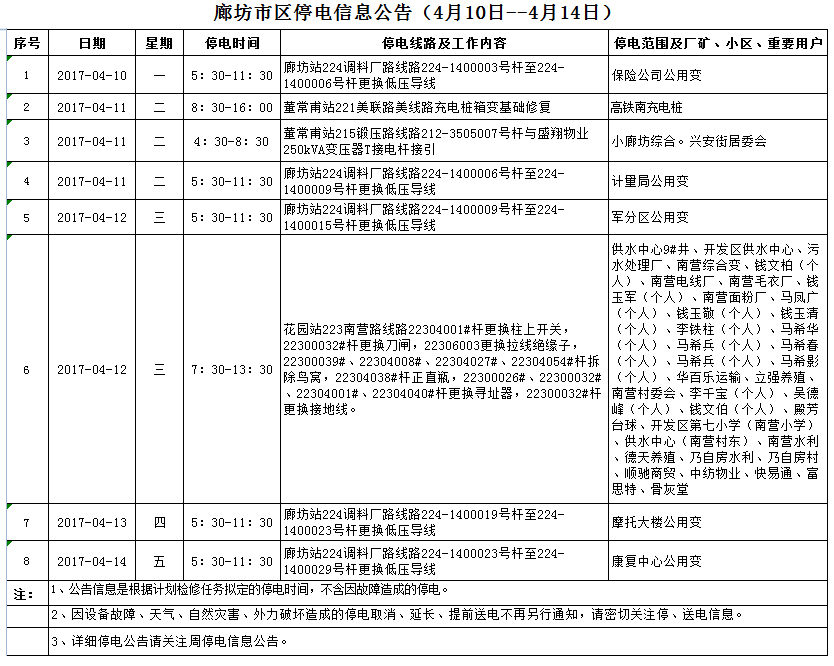 上一篇:廊坊市區(qū)停電信息公告(4月16日--4月21日) 下一篇:市區(qū)20條公交線路臨時(shí)繞行